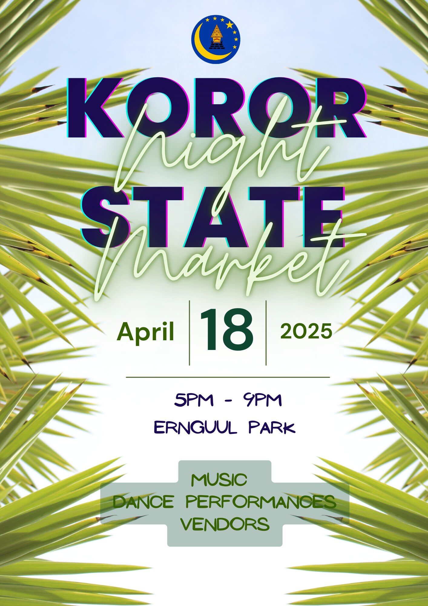 Join us this Friday from 5:00 PM to 9:00 PM at Ernguul Park in Koror for the Koror State Night Market!