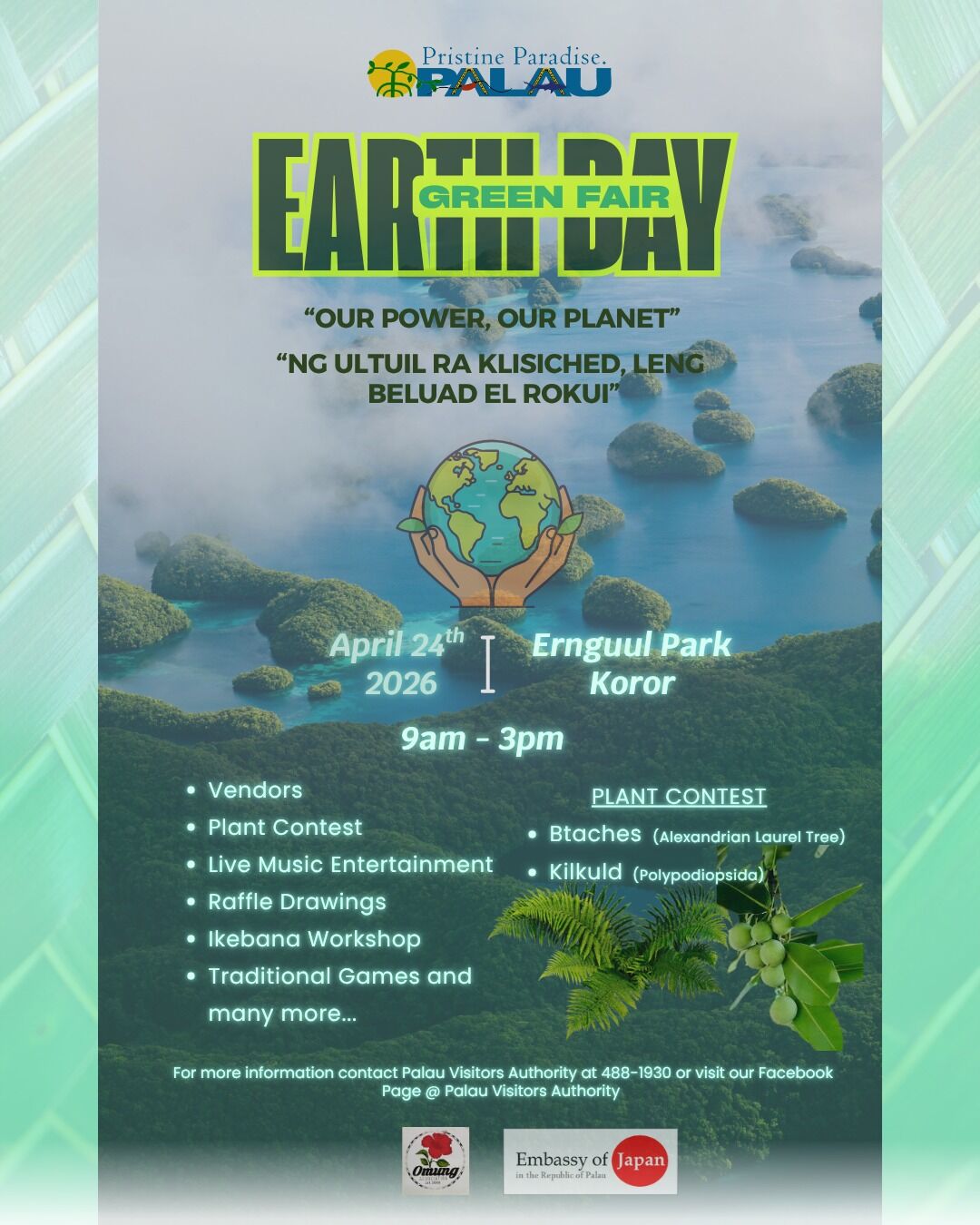 The Palau Visitors Authority invites the public to join the Earth Day Green Fair 2026, a community-focused event celebrating environmental awareness, sustainability, and cultural connection.