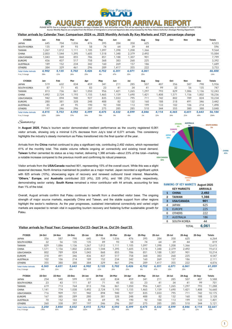 Palau July 2025 Visitor Arrival Report