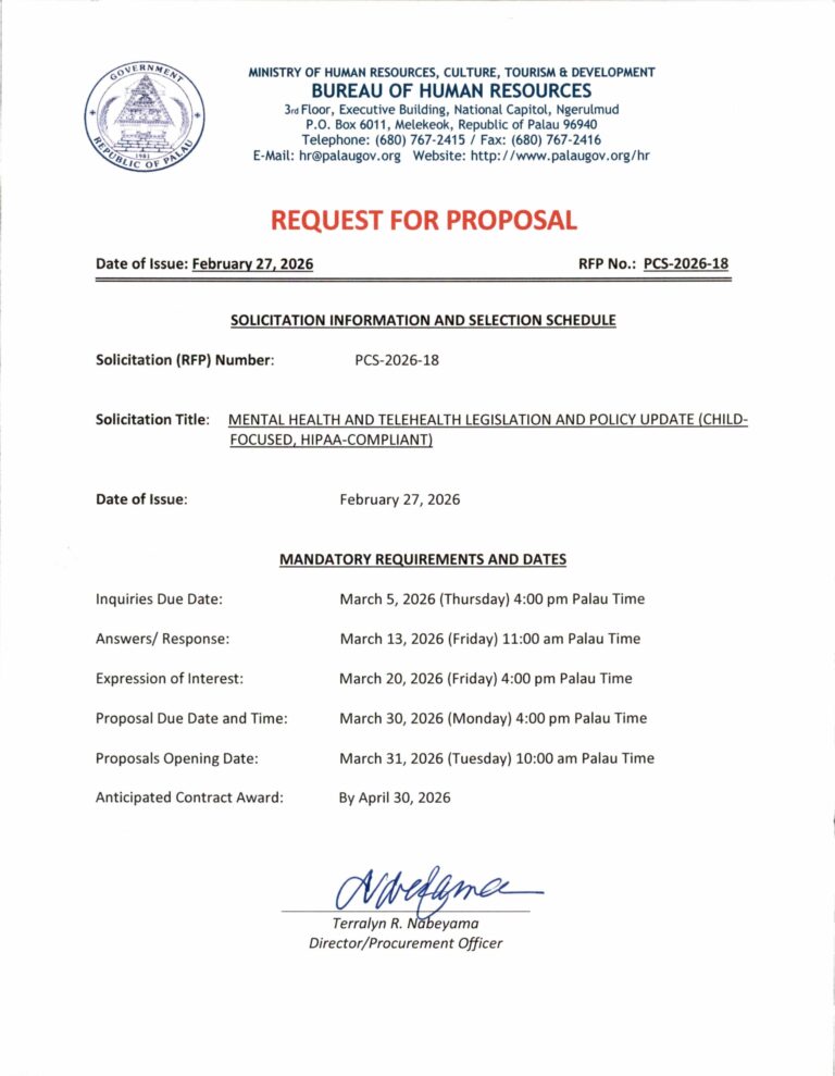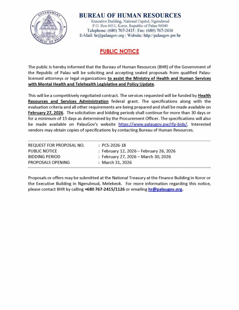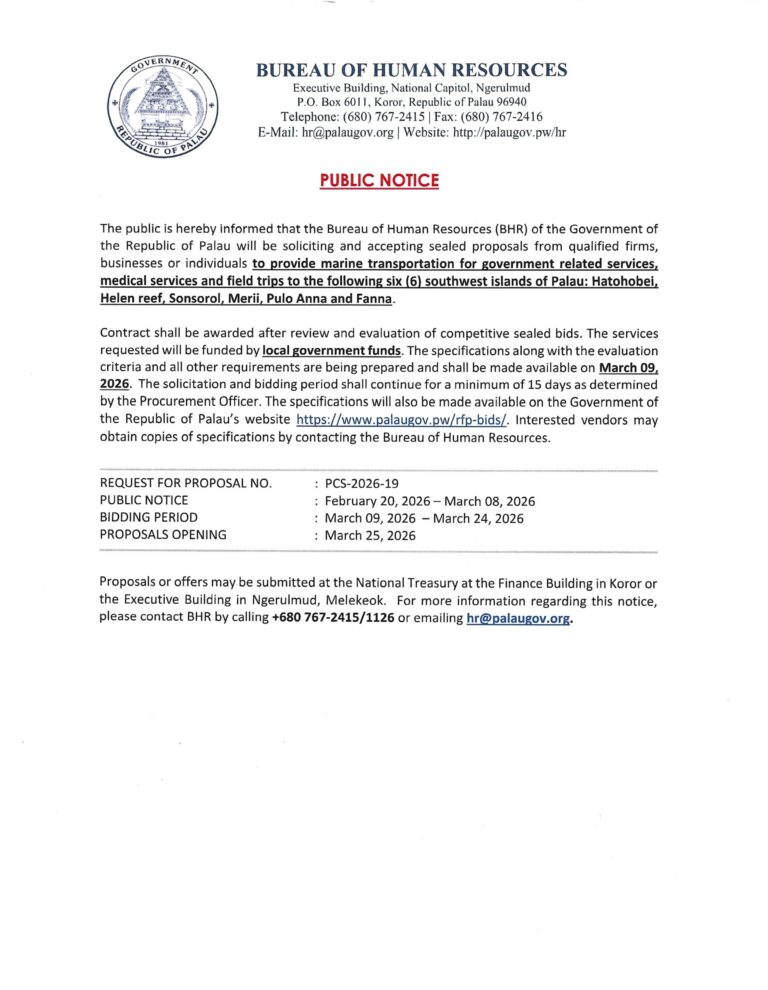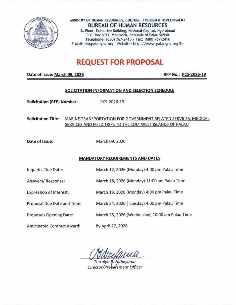 Bureau of Tourism Palau: Reminder to All Tour Operators