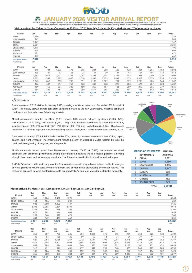 Palau January 2025 Visitor Arrival Report