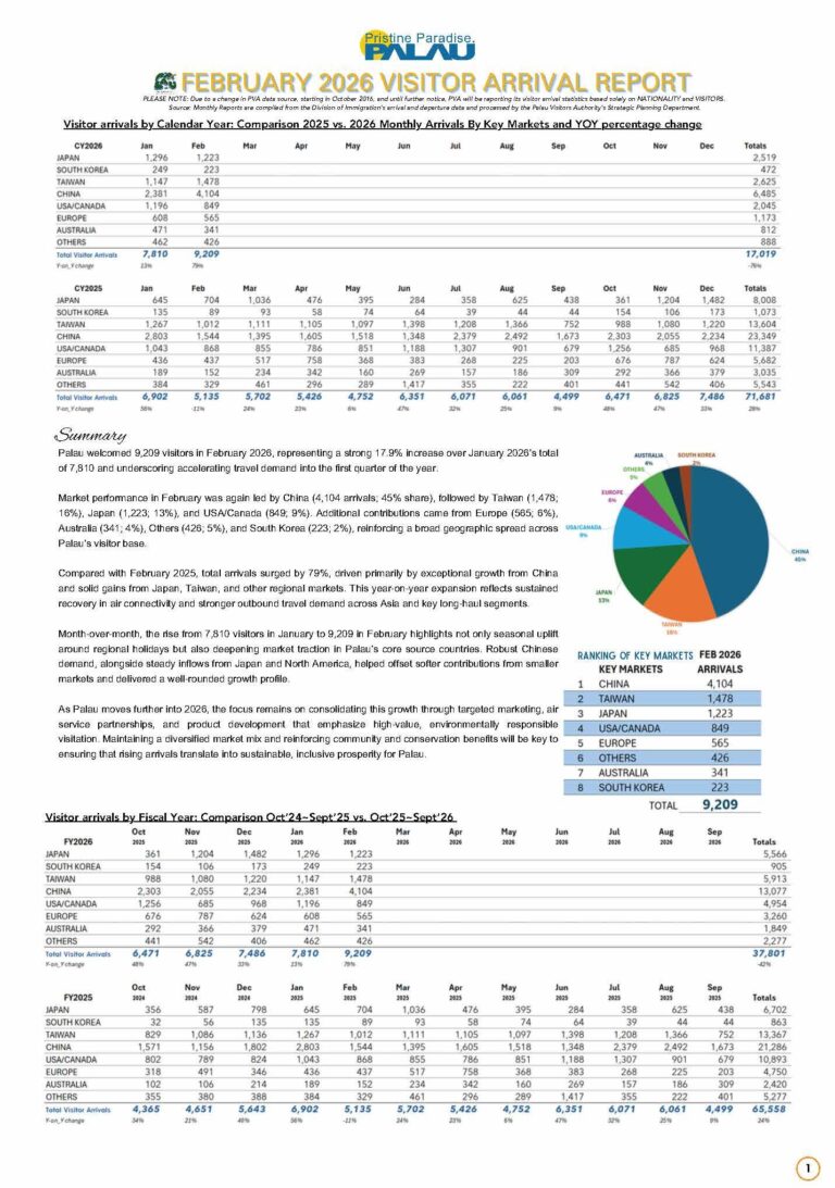 Palau 2020 Visitors Arrival Report
